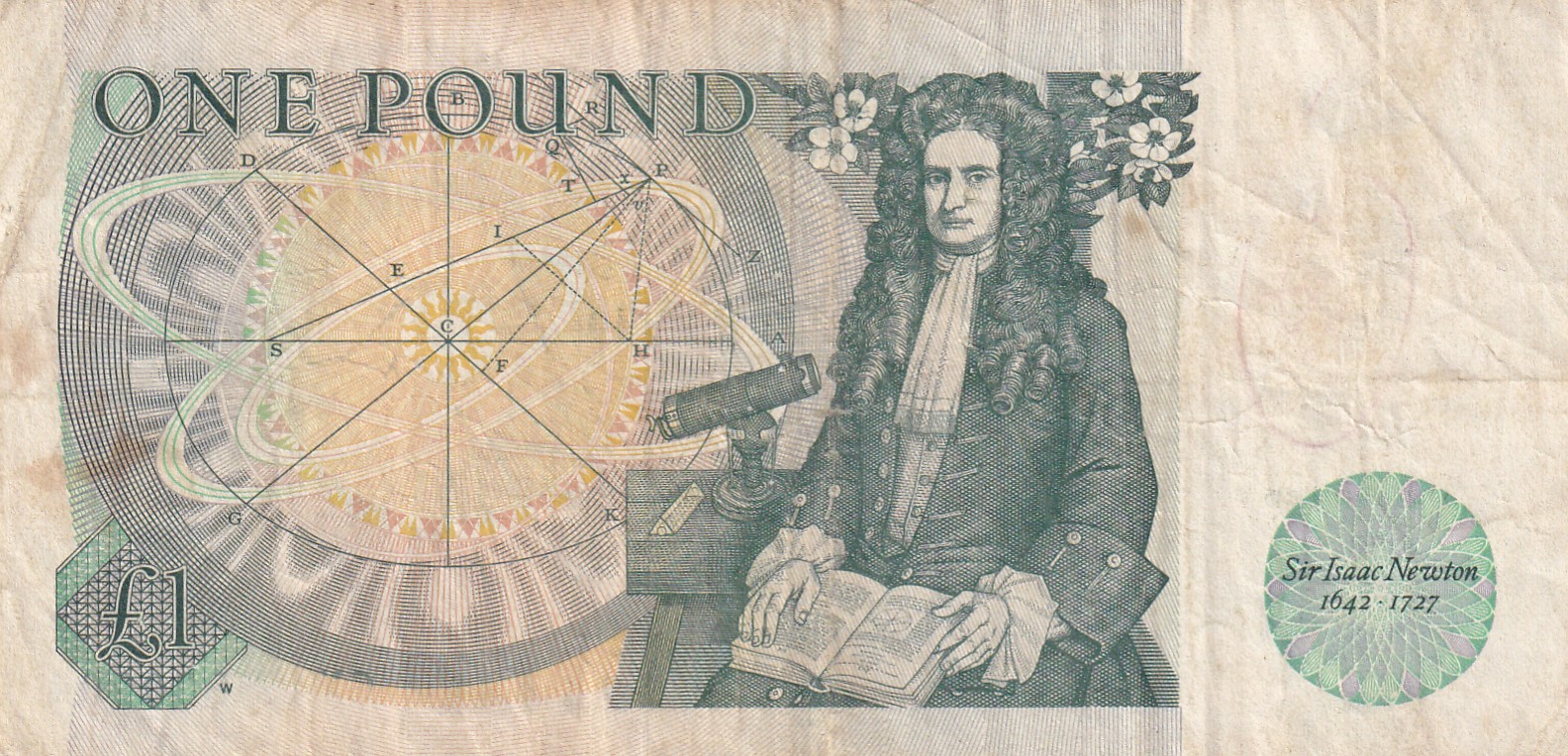 United Kingdom (England) 1 Pound (Elizabeth II Sir Isaac Newton 1642-1727) Rare Note #B-2