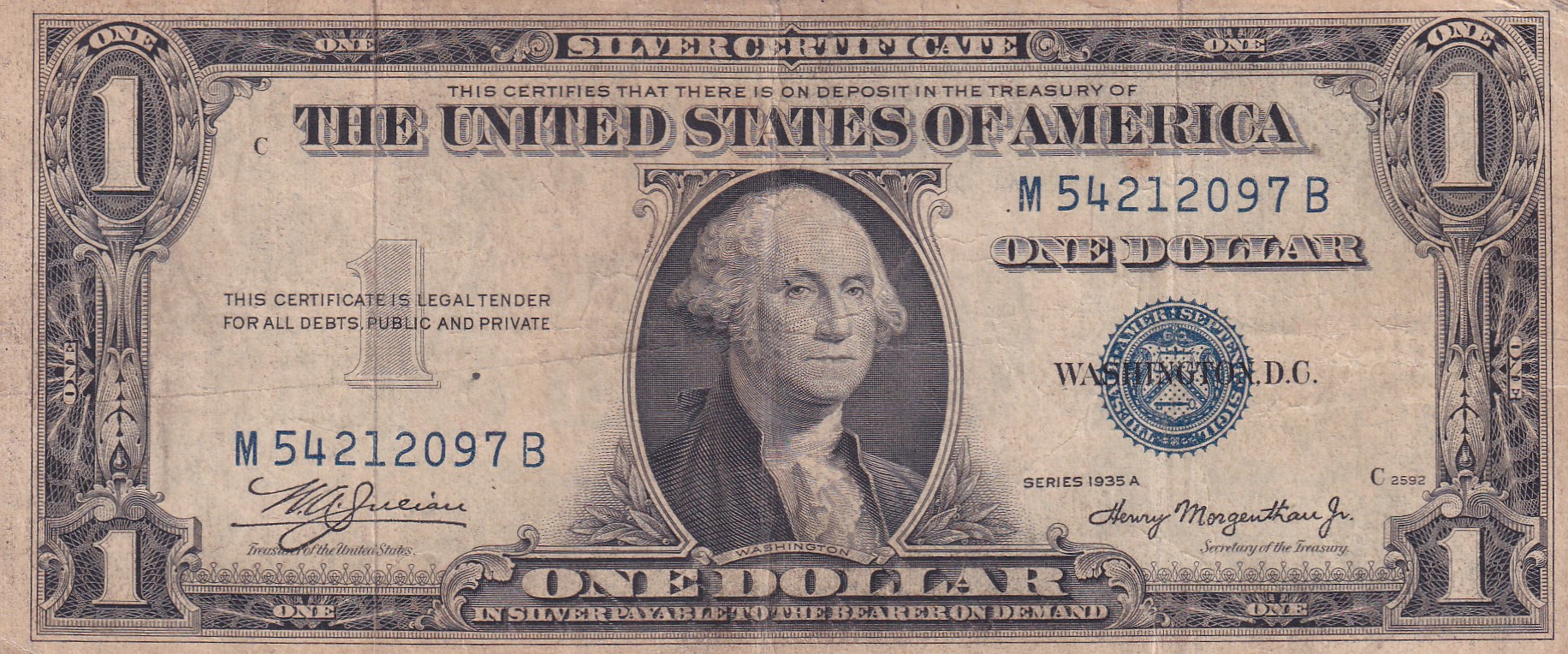 United States 1 Dollar (1935) Silver Certificate, Blue Seal Rare World Note #B2