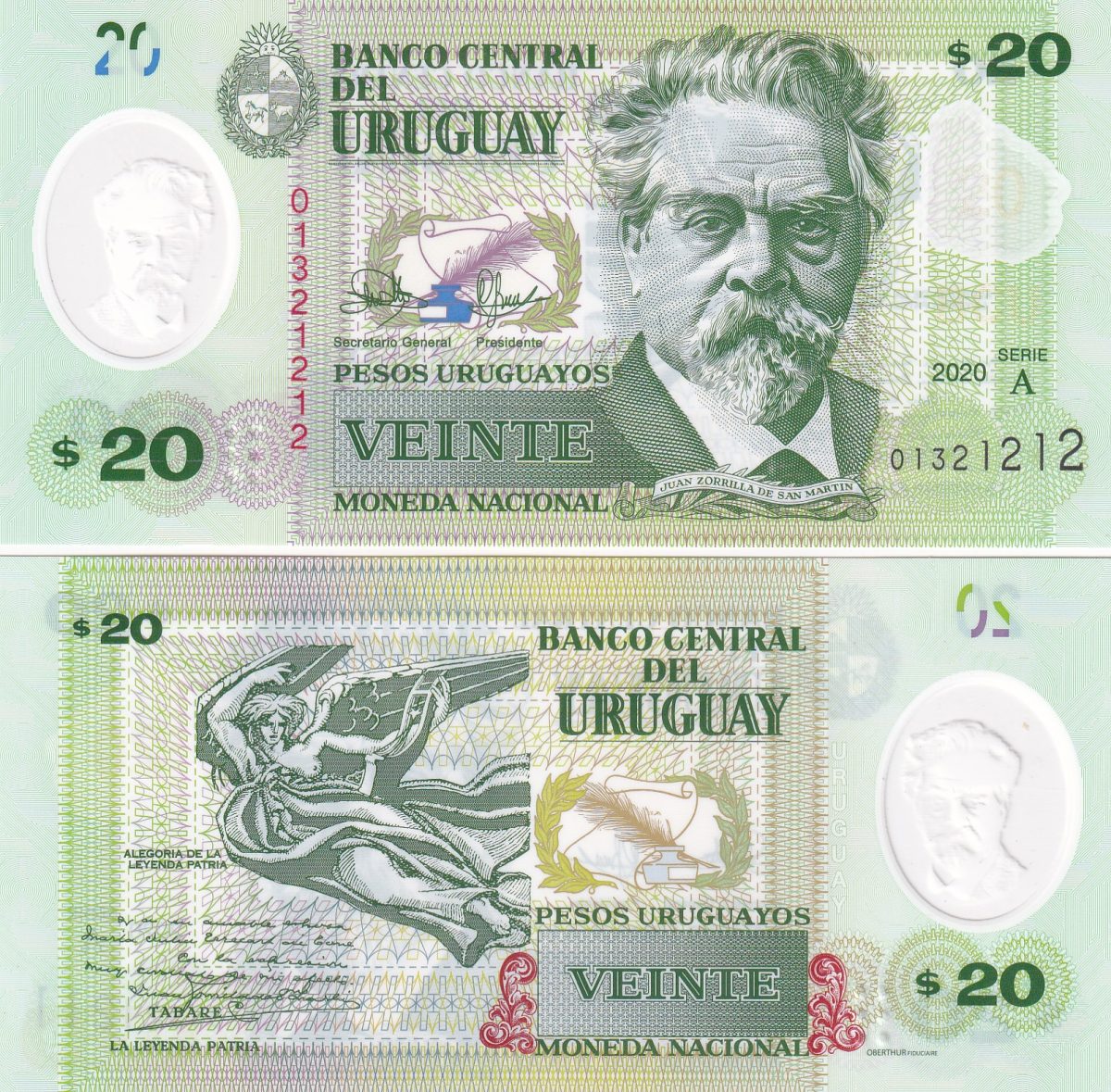 Uruguay 20 Pesos Uruguayos RARE GEM UNC POLYMER NOTE