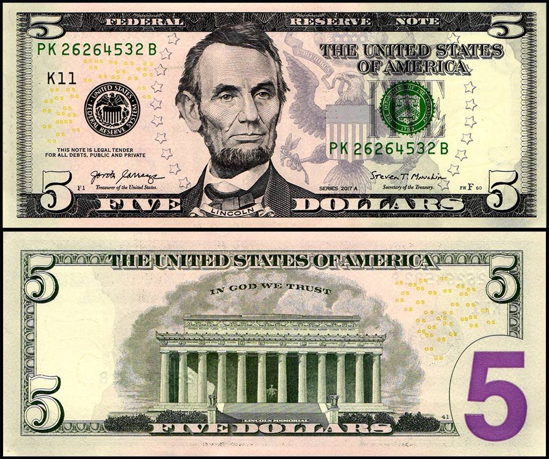 USA 5 Dollars Banknote 2017 Issue A Series Gem UNC Very Unique and Ultra Rare