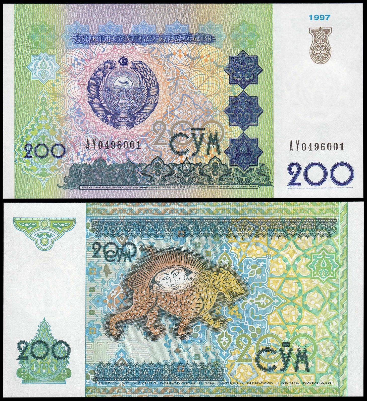 Uzbekistan 200 Sum Banknote 1997 P80 UNC Unique and Rare