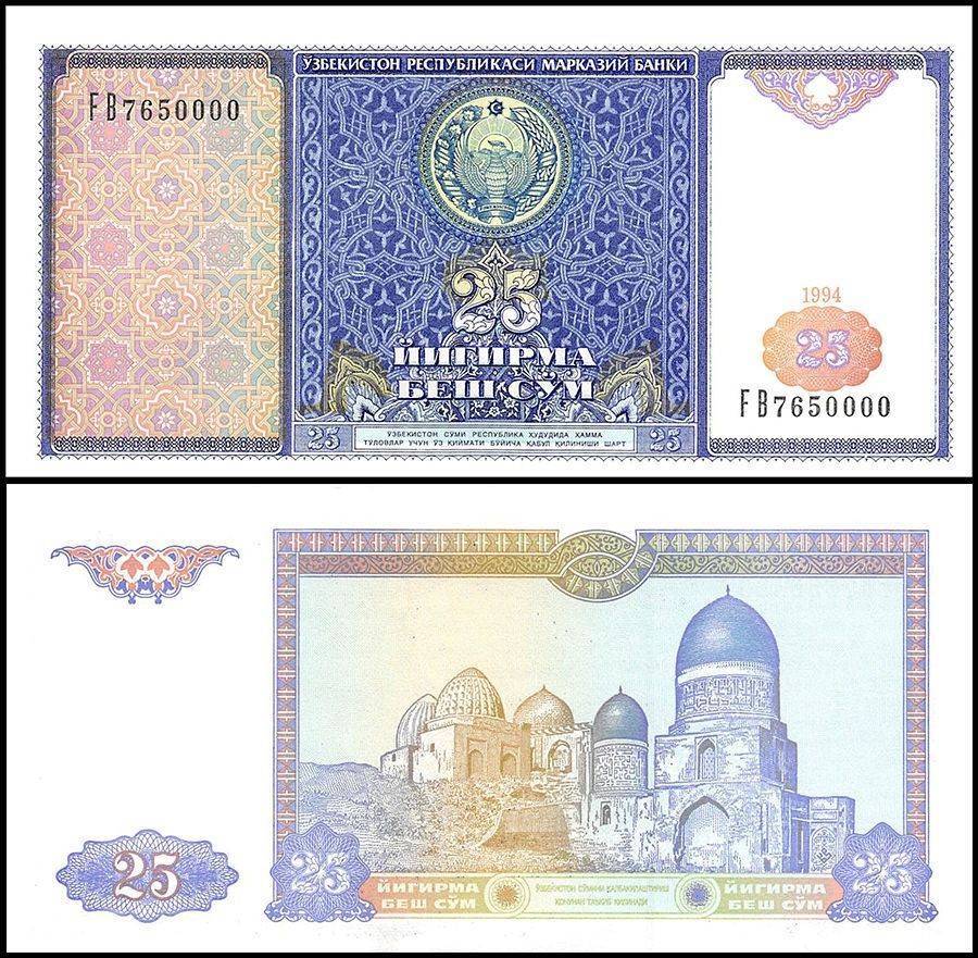 Uzbekistan 25 Sum Banknote 1994 P77a UNC Unique and Rare