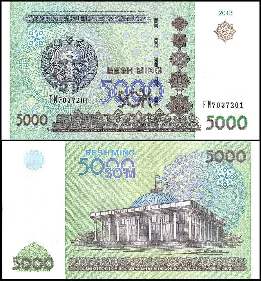 Uzbekistan 5000 Som Banknote 2013 P83 UNC Unique and Rare