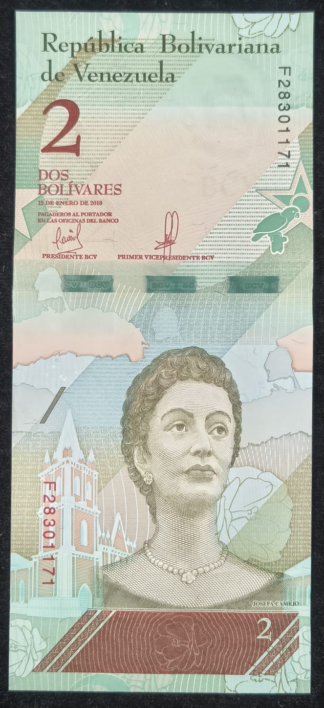 VENEZUELA 2 BOLIVARES UNC BANK NOTE