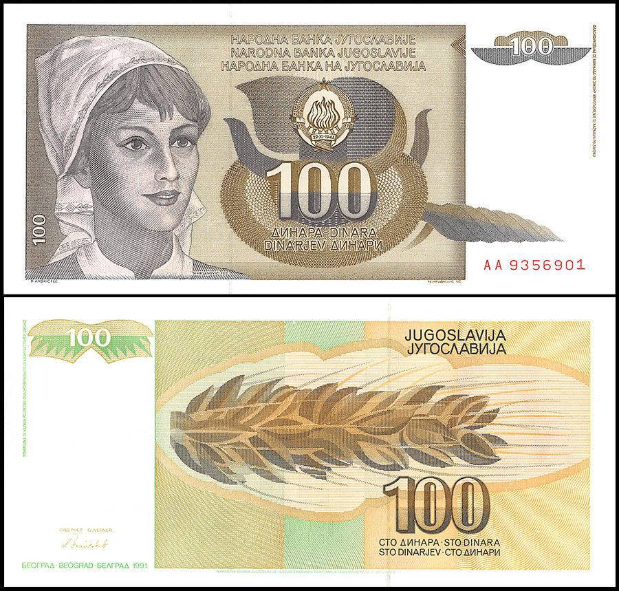 Yugoslavia 100 Dinara Banknote 1991 P108 UNC Unique and Rare