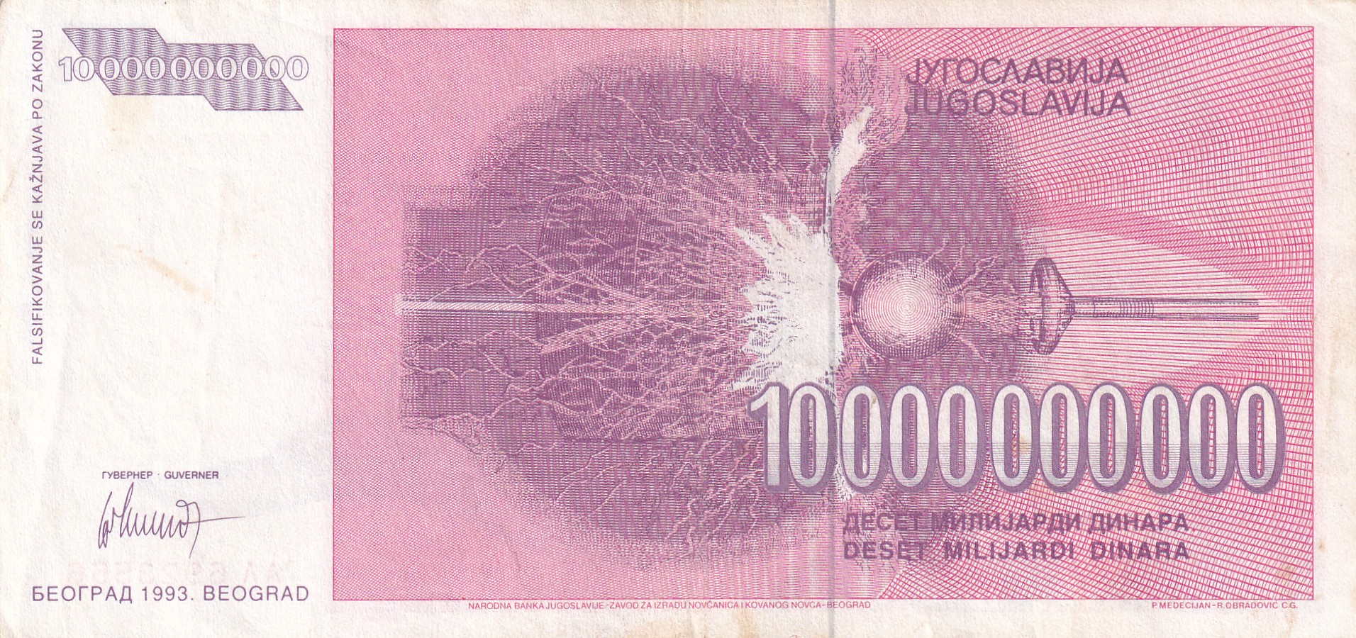 Yugoslavia 10000000000 Dinara Rare Note #B-2