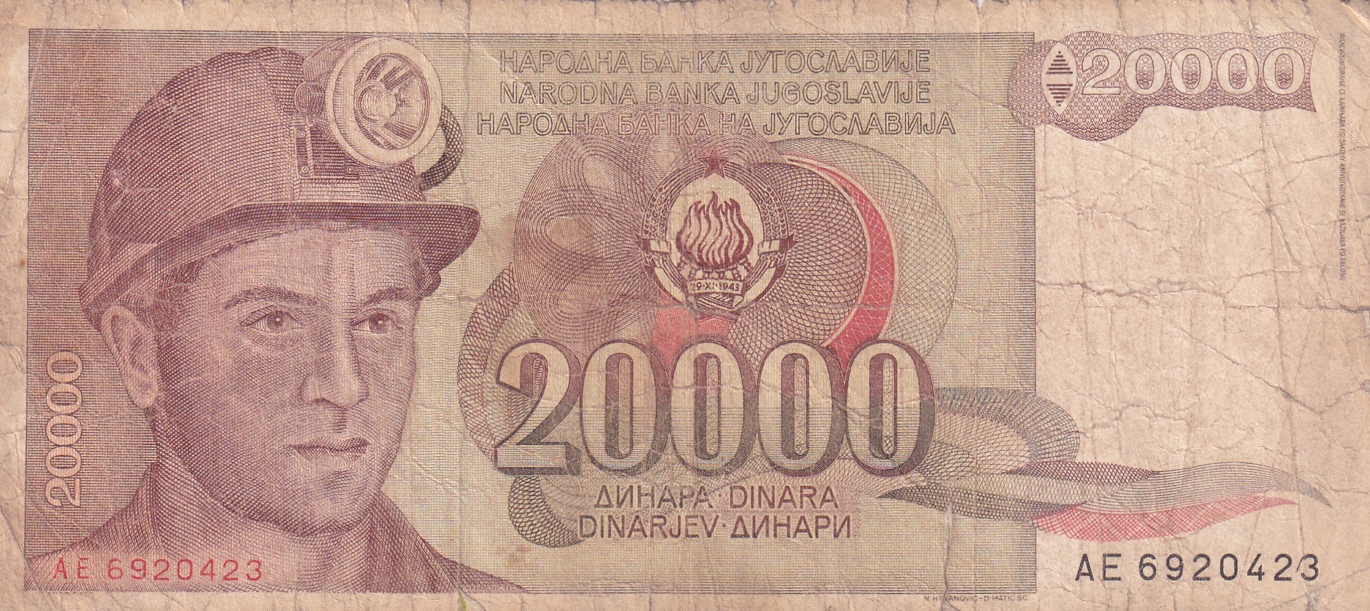 | Value | 20 000 Dinars (20 000 динарa) (20 000 YUD) |