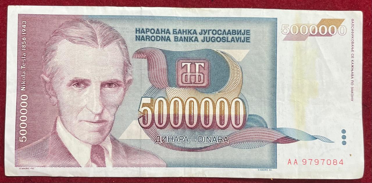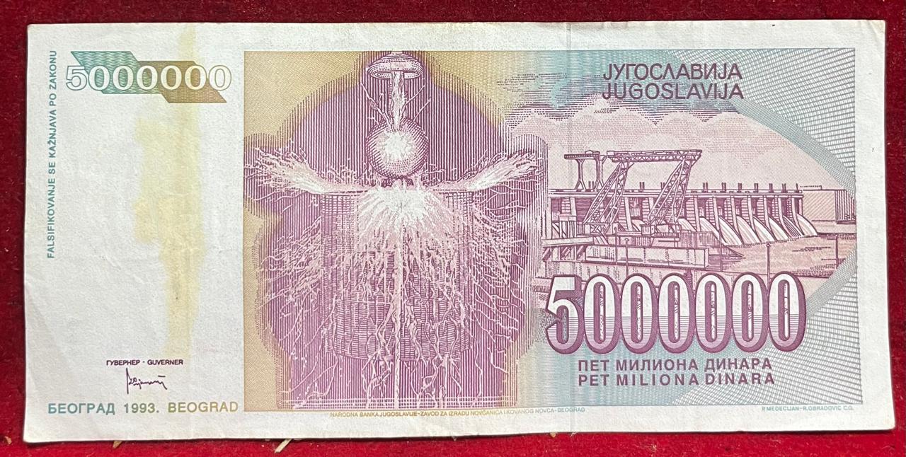 | Value | 5 000 000 Dinars (5 000 000 Dinara) (5 000 000 YUR) |