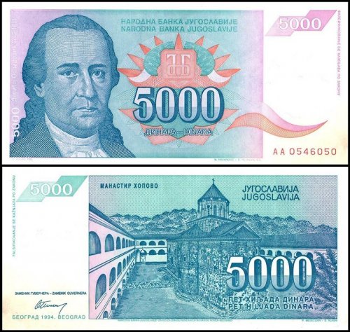 Yugoslavia 5000 Dinara from 1994 and features Dositej Obradovic World banknote UNC Unique and rare