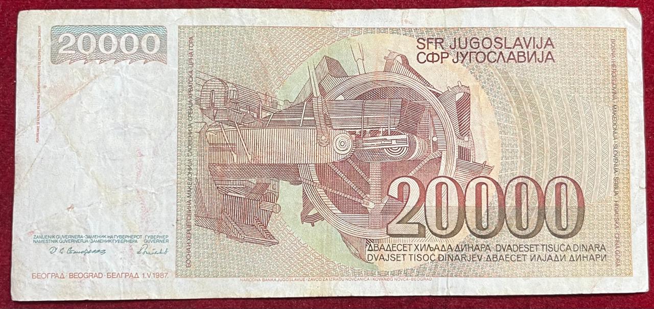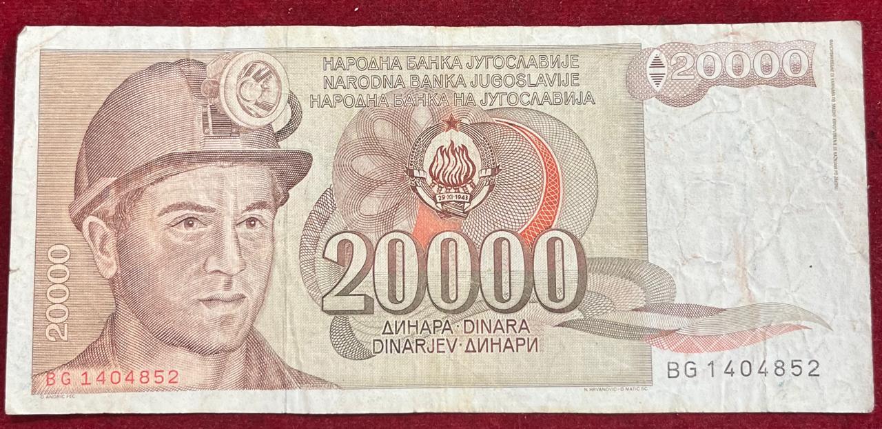 YUOGOSLAIA 20000 DINARA RARE NOTE