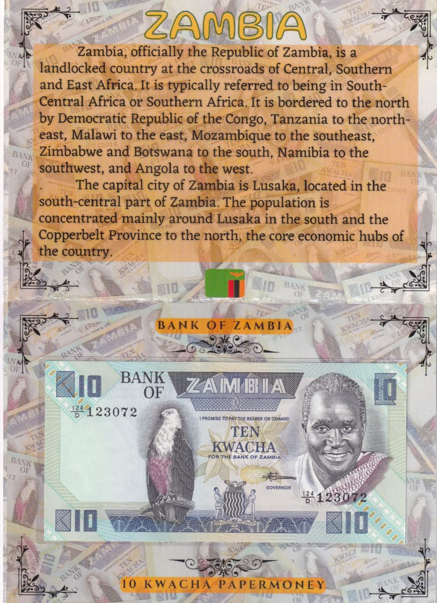 ZAMBIA 10 KWACHA UNC NOTE WITH BEAUTIFUL PACKING