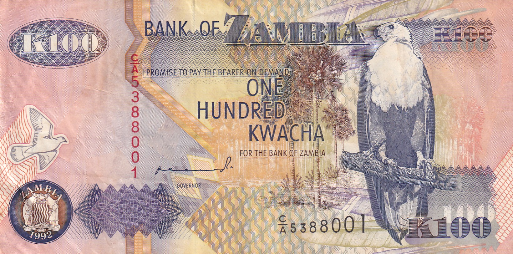 ZAMBIA 100 KWACHA OLD ISSUE WORLD NOTE