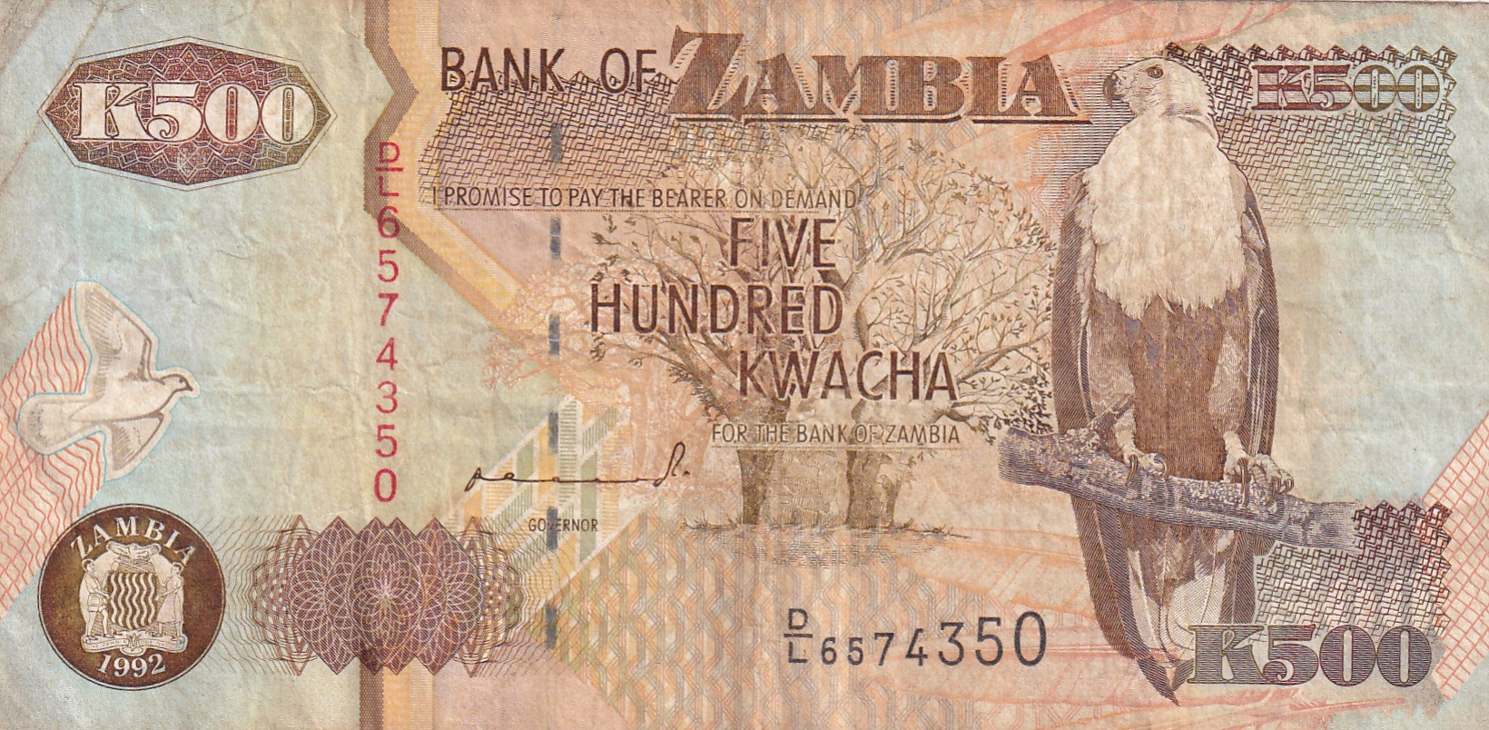 ZAMBIA FIVE HUNDRED KWACHA OLD ISSUE WORLD NOTE
