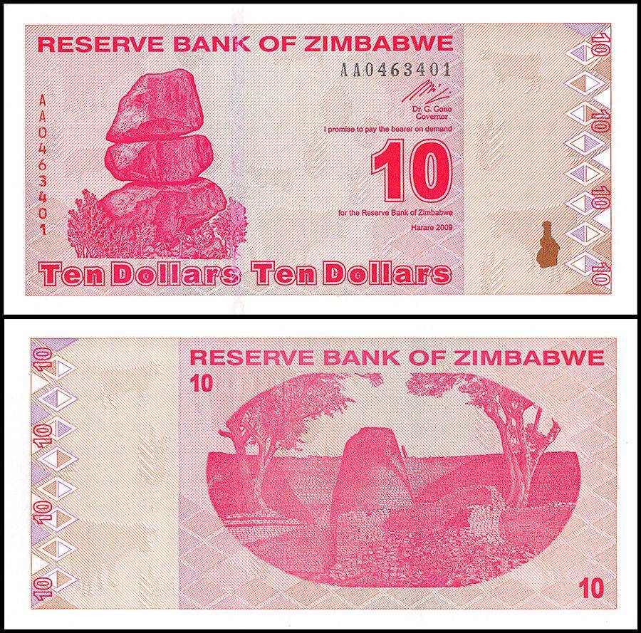 Zimbabwe 10 Dollars Banknote 2009 P94 UNC Unique and Rare