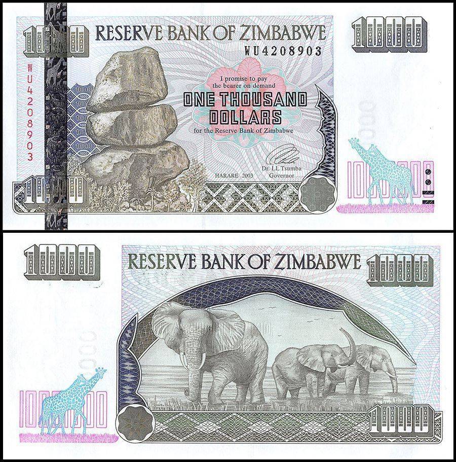 Zimbabwe 1000 World Dollars Banknote, 2003 P12b UNC Unique and Rare