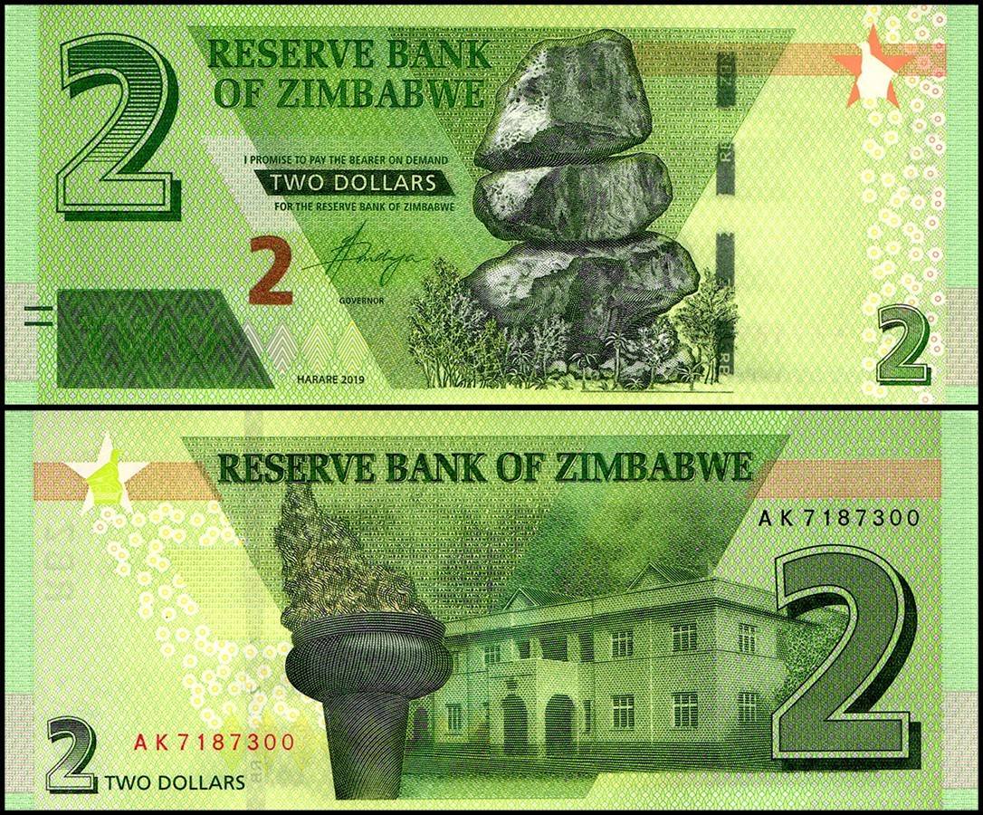 Zimbabwe 2 Dollars Banknote 2019 P101 UNC Unique and Rare