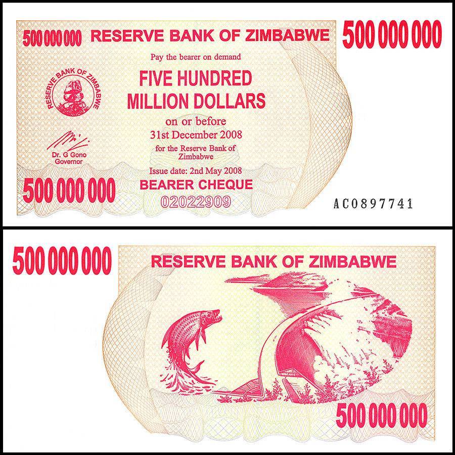 Zimbabwe 500 Million Dollars Bearer Cheque 2008 P60 UNC Unique and Rare