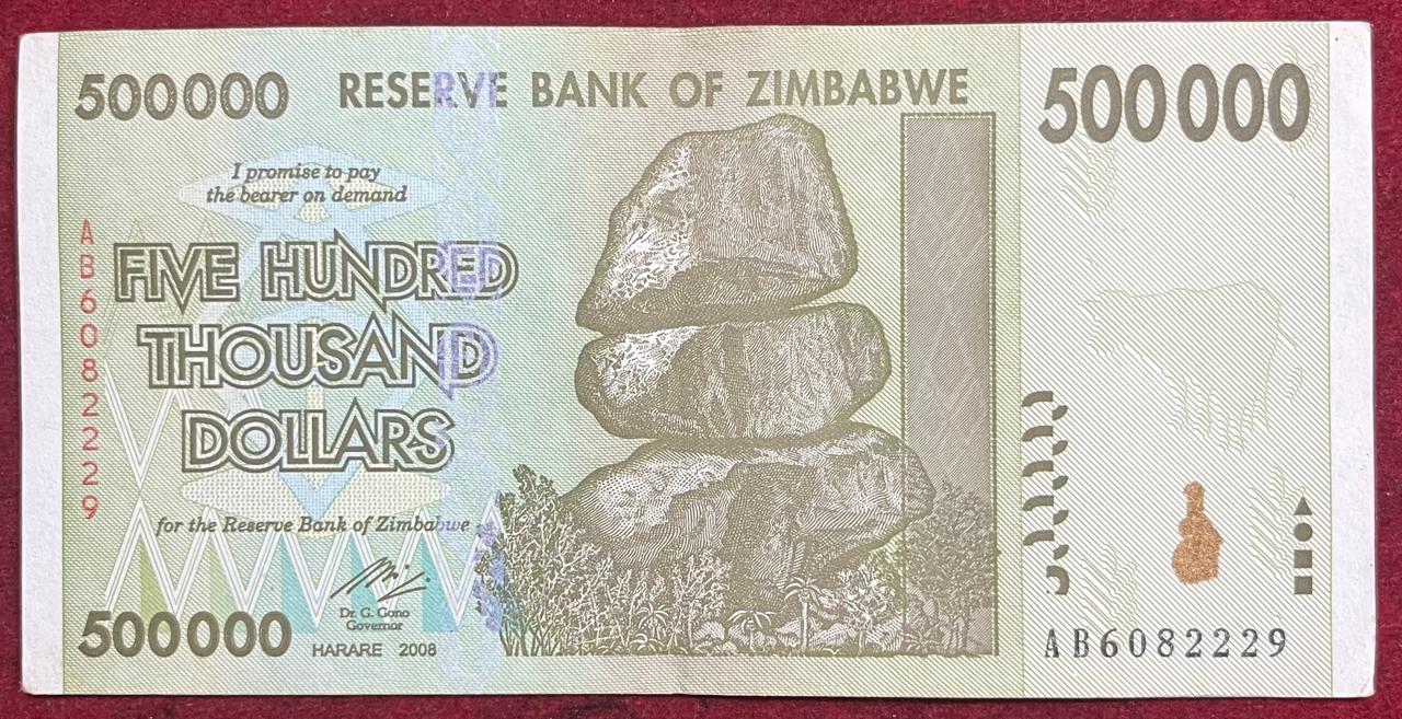 ZIMBABWE 500000 DOLLARS RARE NOTE #B-2