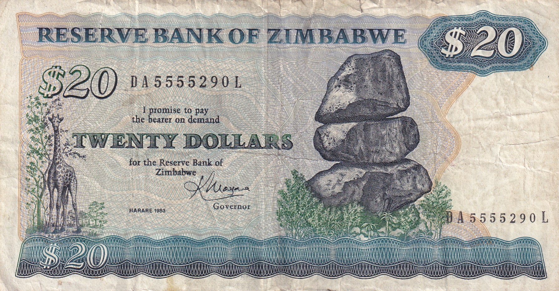 ZIMBABWE TWENTY DOLLARS OLD ISSUE WORLD NOTE
