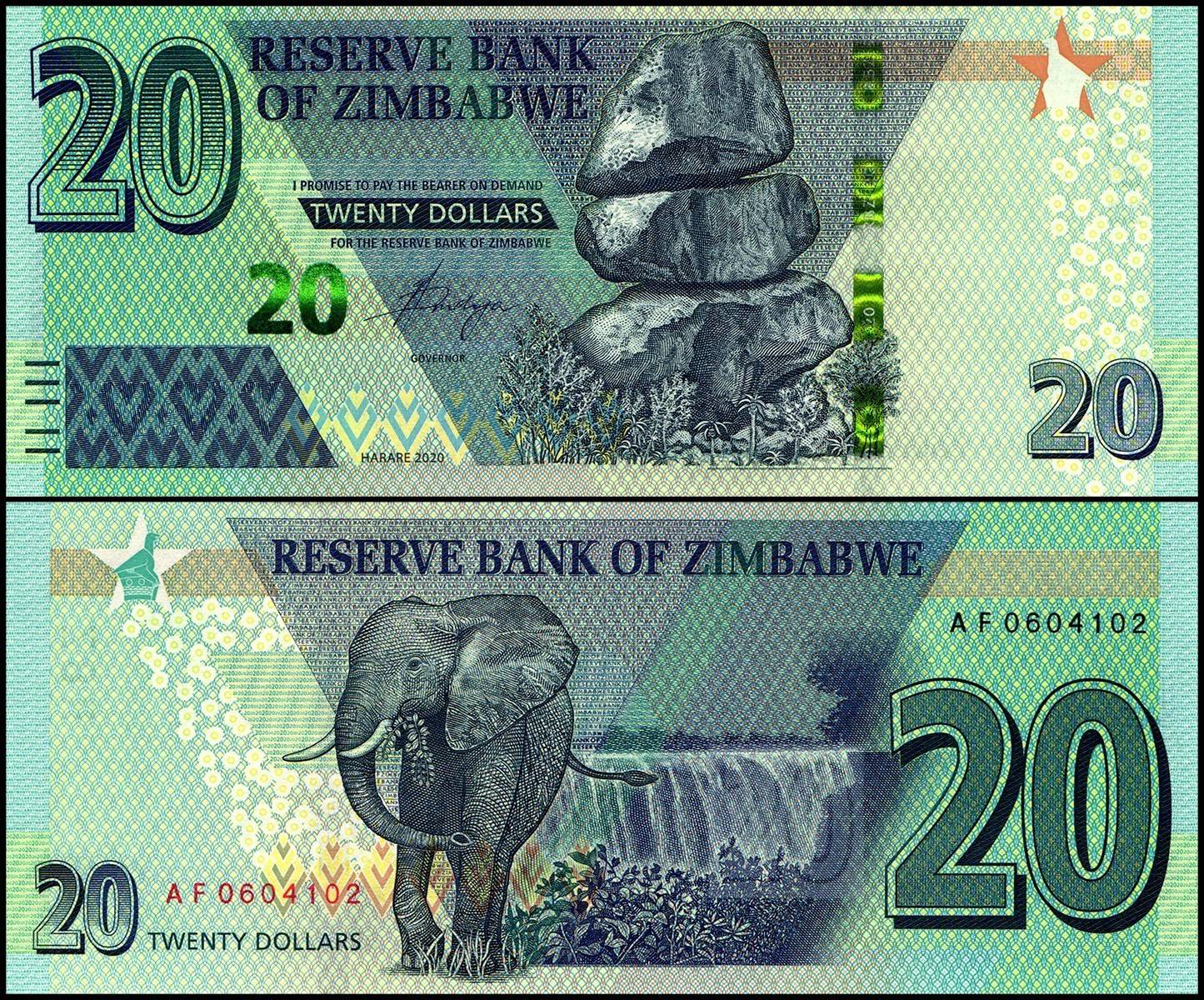 Zimbabwe World Banknote Series 20 Dollars Banknote 2020 P104 UNC Unique and Rare